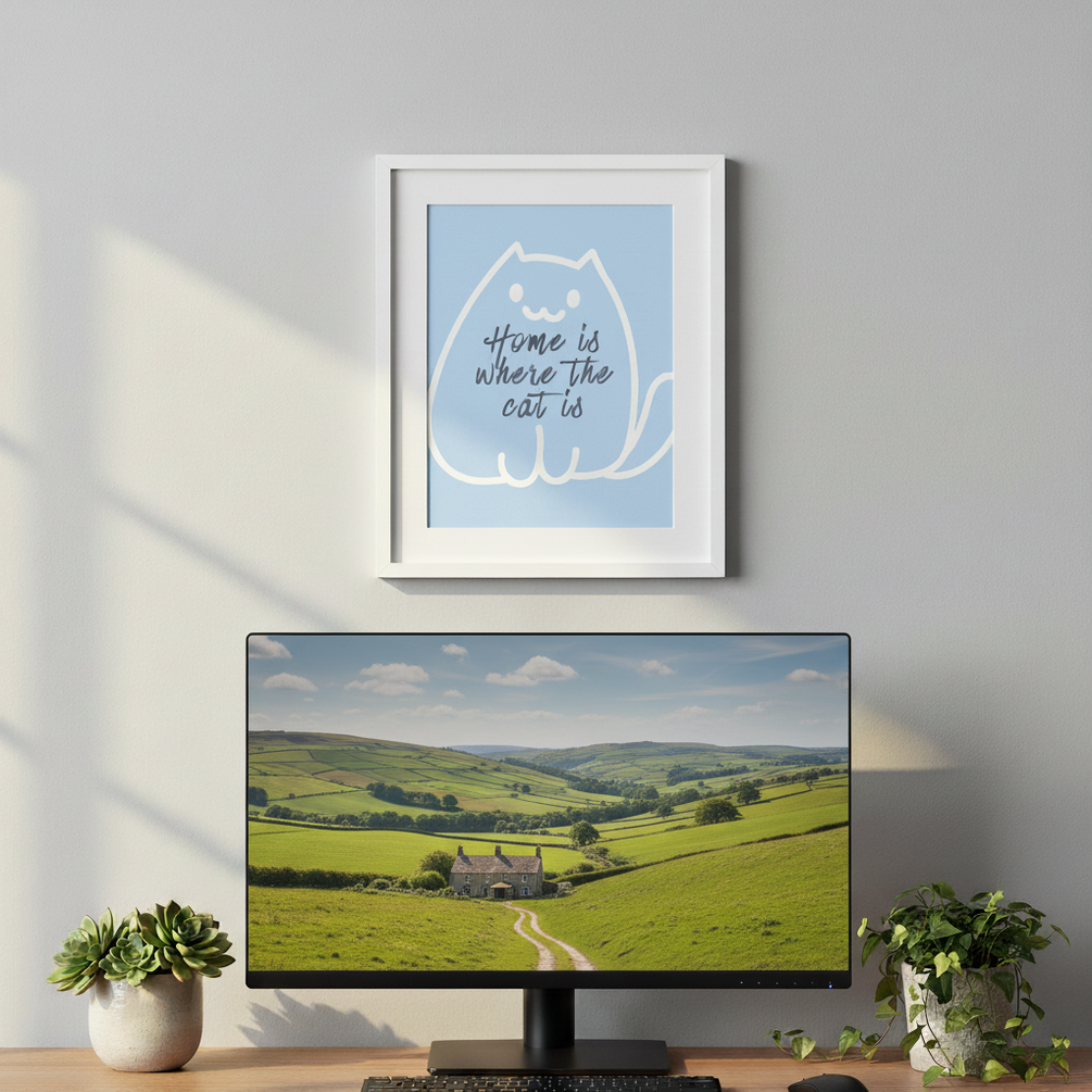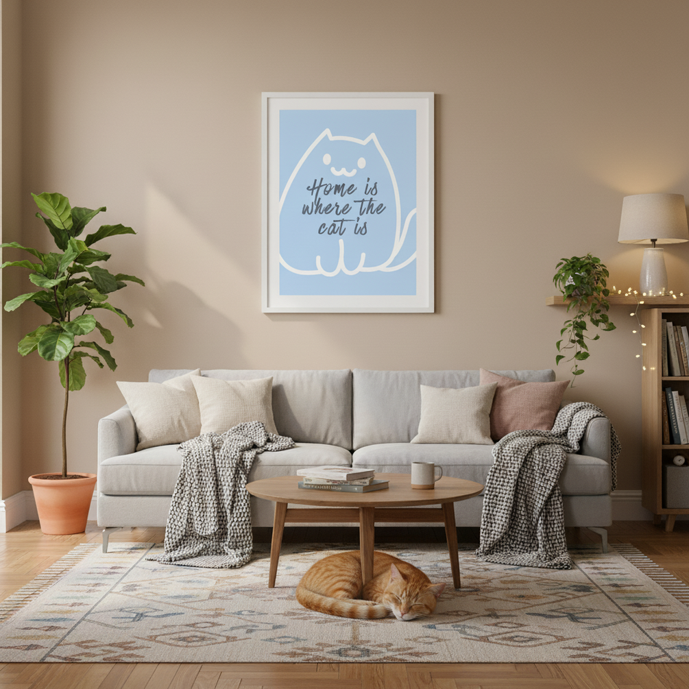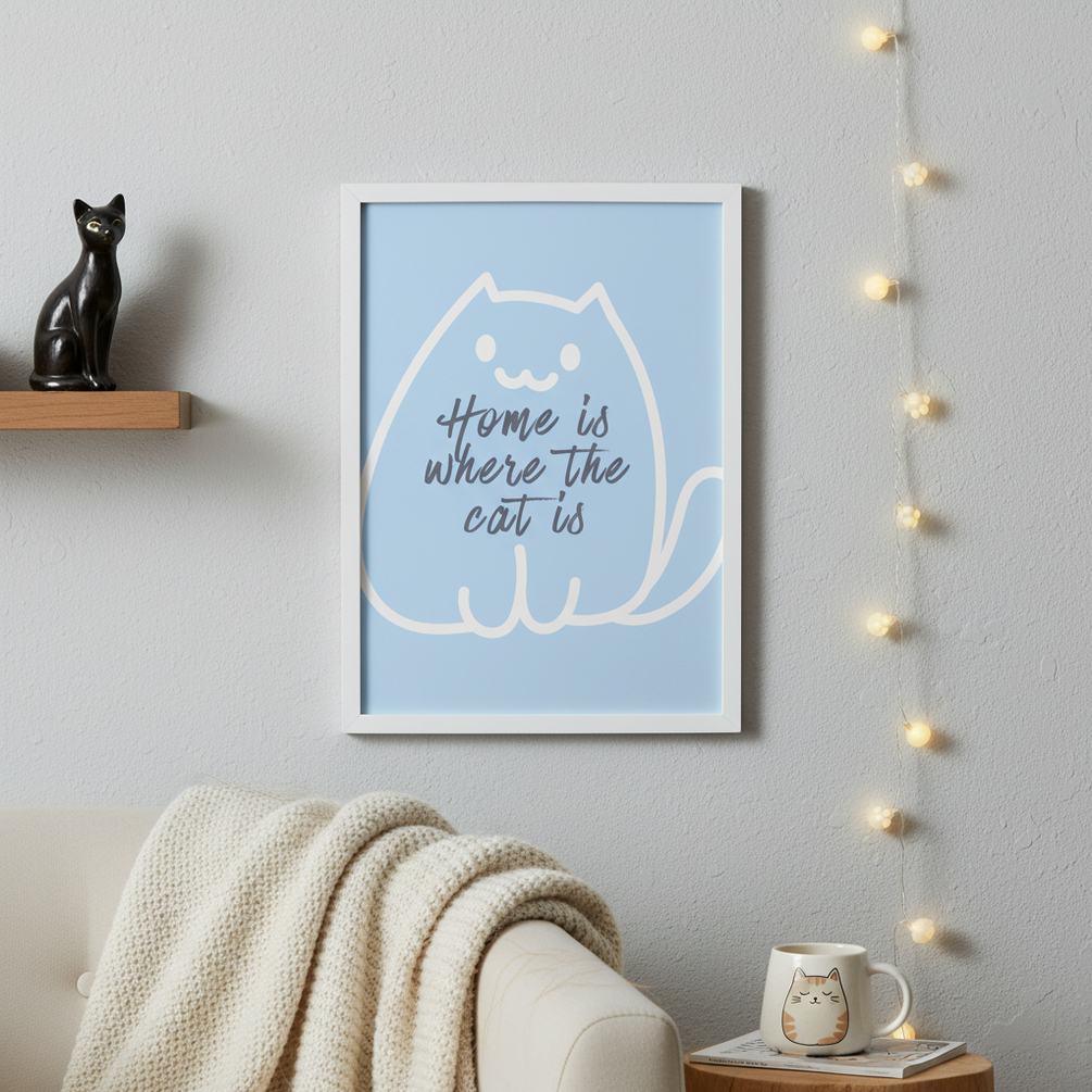 Printable wall art/ poster- Home is where the cat is. Home Decor | Desk setup frame | Downloadable Digital Download